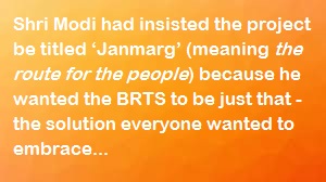Effectively, the BRTS has come to be widely accepted and made use of by practically everyone, no matter where they are in the socio-economic bracket. Shri Modi had insisted the project be titled "Janmarg" (meaning the route for the people) because he wanted the BRTS to be just that - the solution everyone wanted to embrace.